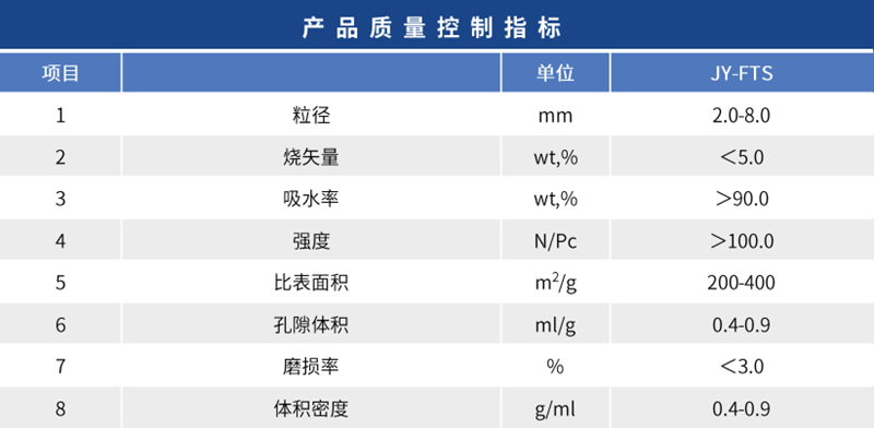晶型:γ-Al2O3或θ-Al2O3 物理性質(zhì): 本品無毒、無味、無臭、不溶于水和乙醇。 產(chǎn)品介紹: JY-FTS型產(chǎn)品具有抗壓強度高、磨損小的特點。可根據(jù)需要調(diào)節(jié)大小、孔隙結(jié)構(gòu)、容重。廣泛應(yīng)用于吸附劑、加氫脫硫催化劑載體、加氫脫氮催化劑載體、CO耐硫移位催化劑載體等領(lǐng)域。