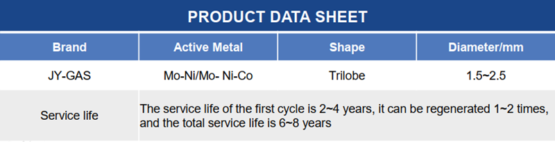 JY-GAS series catalysts are a new distillates hydrorefining catalyst for processing high-sulfur light distillates , the series of catalysts using a new alumina carrier, optimized active components.